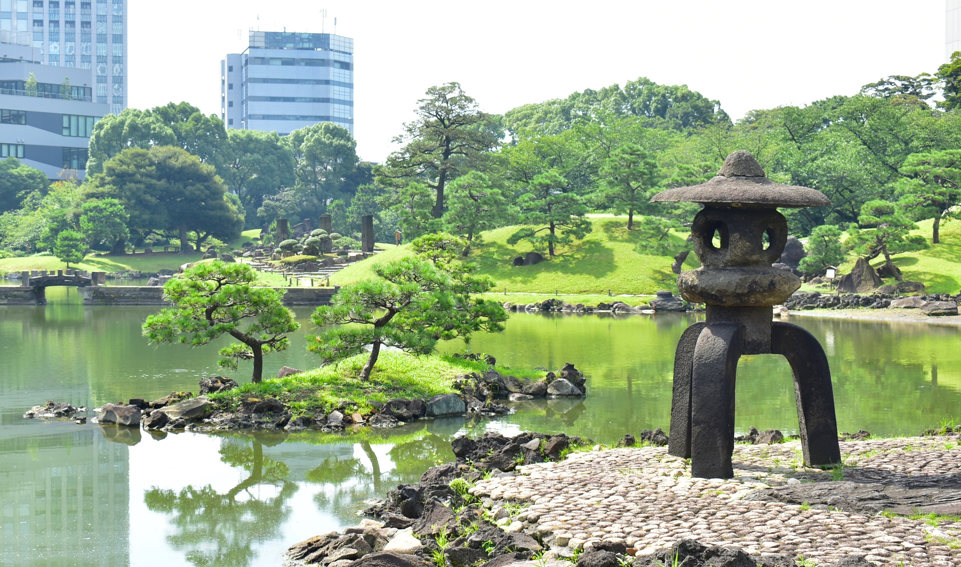 国指定名勝。延宝6(1678)年に、時の老中で後に小田原藩主となった大久保忠朝が4代将軍徳川家綱から拝領し、「楽壽園(らくじゅえん)」と呼ばれる庭園を造ったのが始まりです。明治9(1876)年に芝離宮となりましたが、関東大震災で洋館・和館からなる宮殿や樹木の多くが失われてしまいました。震災の翌年、大正13(1924)年に皇太子(昭和天皇)ご成婚記念として、東京市に下賜(かし)されました。
