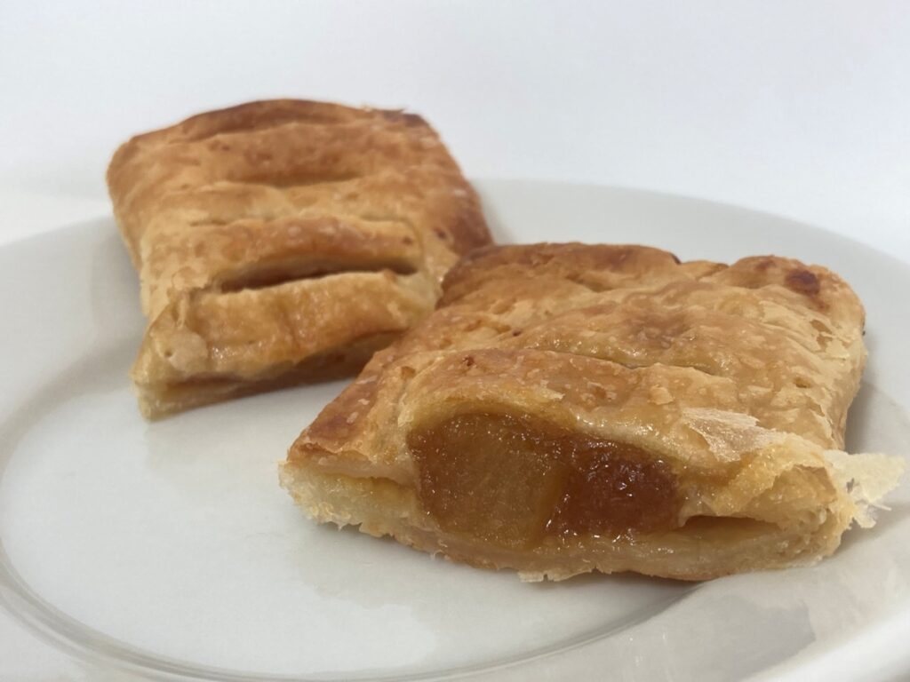 それではいただきます。サクサクふわふわの生地とジューシーなりんごの果肉は相性バツグンで、格別の美味しさ!パイ生地には発酵バターが使用されており、コクと優しい甘さを楽しむことができます。程よいしっとり感もあって崩れにくく、紙袋に入れたまま片手で食べやすいのが嬉しいポイント。