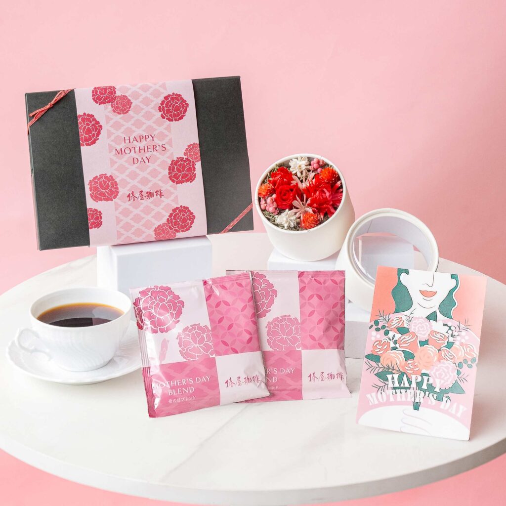 セットになっているコーヒーは、すべて母の日限定パッケージの「椿屋スペシャルティブレンド」。香ばしく芳醇な香りとバランスのよいコクで、ゆっくり味わいたくなる一杯です。お花を楽しんだあとも、コーヒーでほっとひと息。うれしさが長く続く、母の日にぴったりのギフトです。