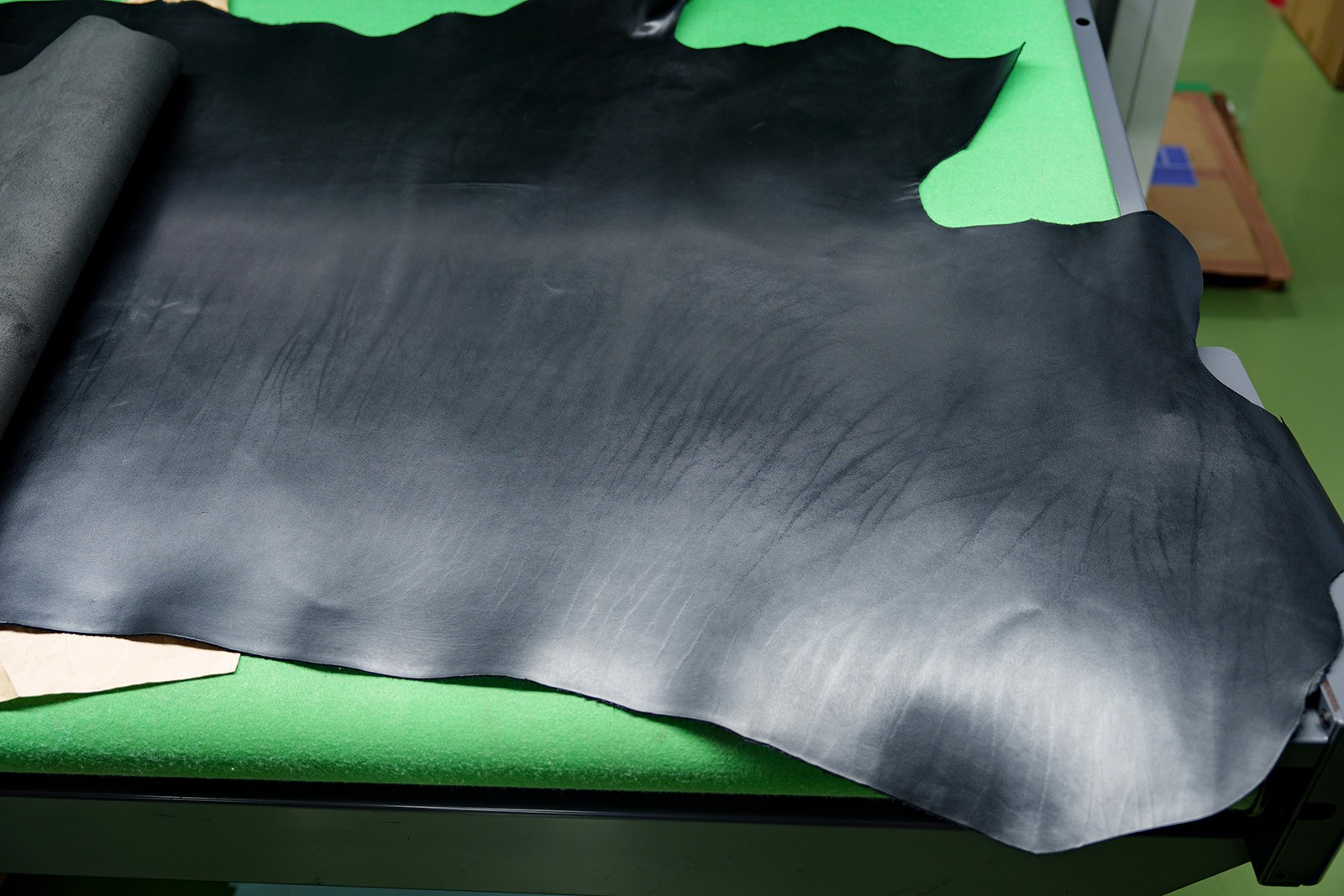 革それぞれの個性をそのまま生かしているため、色合い、ツヤ感、厚み、キズやシワなど、少しずつ異なる仕上がりになっています。