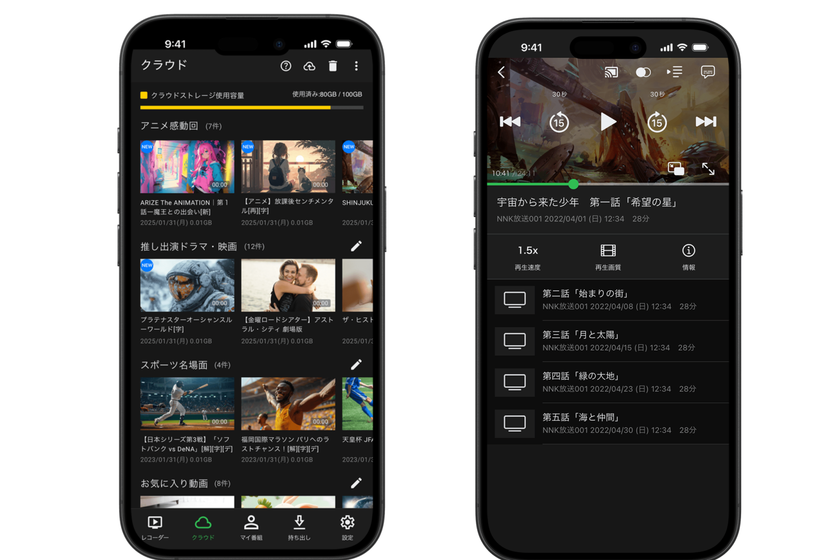 従来のレコーダーへのリモートアクセス(宅外視聴)に比べ、クラウド経由でより確実で安定した接続環境により、通信環境に左右されやすい外出先でも、ストレスのないスムーズな番組視聴を実現します。