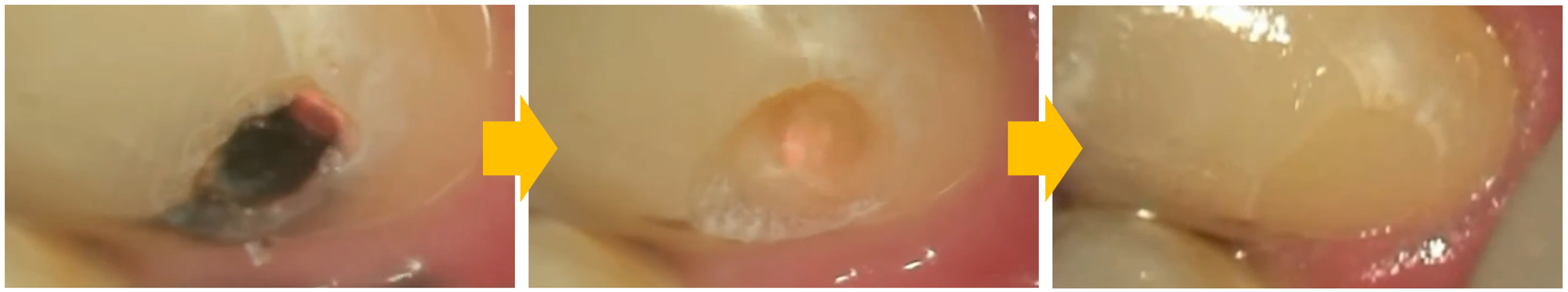 虫歯に冒された部分だけを蒸散させるため、健全な歯質を削る量を最小限に抑えることが可能です。