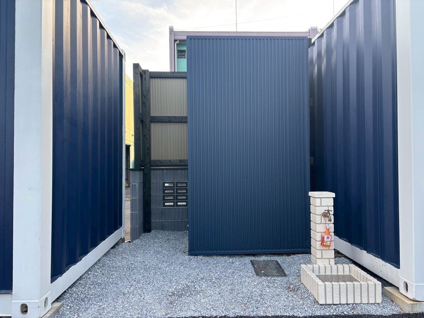 約16帖の大容量トランクルーム!入口となる2つの開口には、片方を荷物の出し入れがしやすいシャッタータイプに、もう一方にはシャッターに加えて小上がりの玄関ポーチと親子扉を採用。