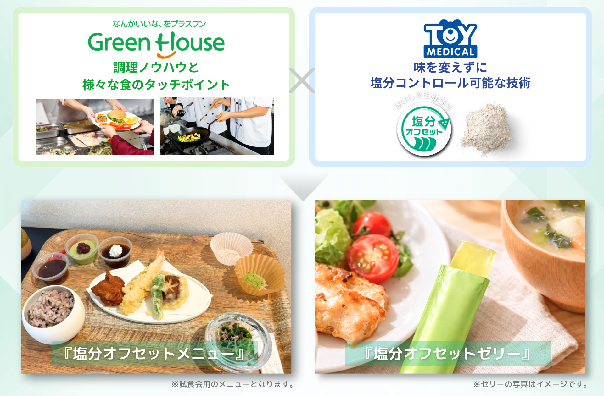 グリーンハウスグループは創業以来、食を通じてみなさまの健康を支えるために、さまざまな食の現場に真摯に向き合ってまいりました。塩分量に配慮した食事は、健康づくりの基本としてこれまでも重要な役割を果たしてきましたが、ライフスタイルや嗜好が多様化する中では、従来の減塩の考え方に加えて、より無理なく続けられる選択肢も必要なのではないかと感じております。今回の共創では、トイメディカルの塩分オフセット技術と当社の調理や栄養の知見を掛け合わせることで、新たな選択肢の可能性を確認することができました。今後も、食の楽しさや満足感を大切にしながら、一人ひとりにあった健康的な食の選択肢を増やしていくことに取り組んでまいります。