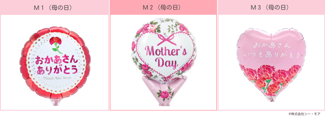 母の日専用のバルーンは、従来の人気デザイン2種類に加え、新たに1種類の新作デザインが登場。