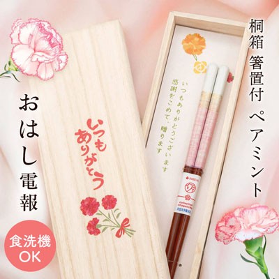 カーネーションと「ありがとう」のメッセージがあしらわれた桐箱入りのお箸ギフトは、母の日の贈り物としてご好評をいただいているアイテムです。