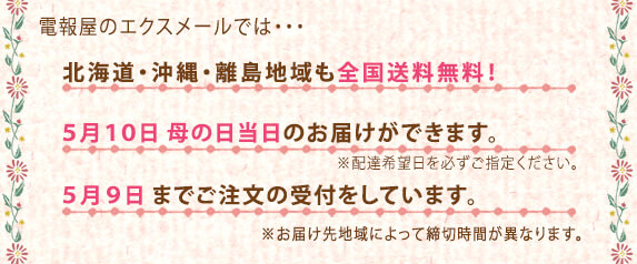 前日5月9日までのお申込みで、母の日当日(2026年5月10日)のお届けにも対応しています。